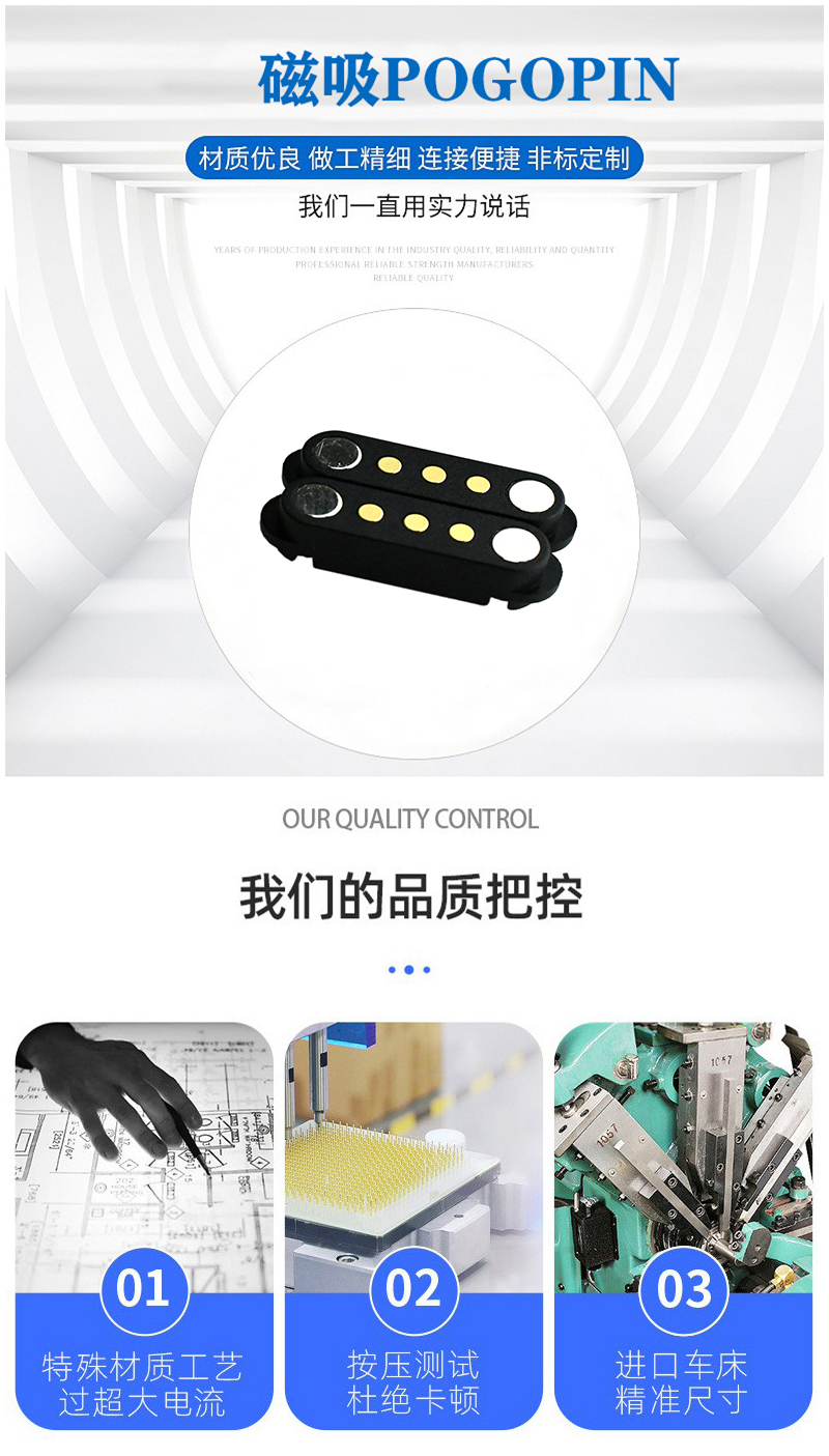 永探磁吸POGOPIN(磁吸彈簧針連接器)是一種結(jié)合磁性吸附與彈簧針結(jié)構(gòu)的精密電子連接器,廣泛應(yīng)用于智能穿戴、消費(fèi)電子、醫(yī)療設(shè)備等領(lǐng)域,磁吸POGOPIN憑借其高效、可靠的特性,正成為電子設(shè)備連接的主流方案之一,未來(lái)將持續(xù)向高功率、微型化、智能化方向演進(jìn)